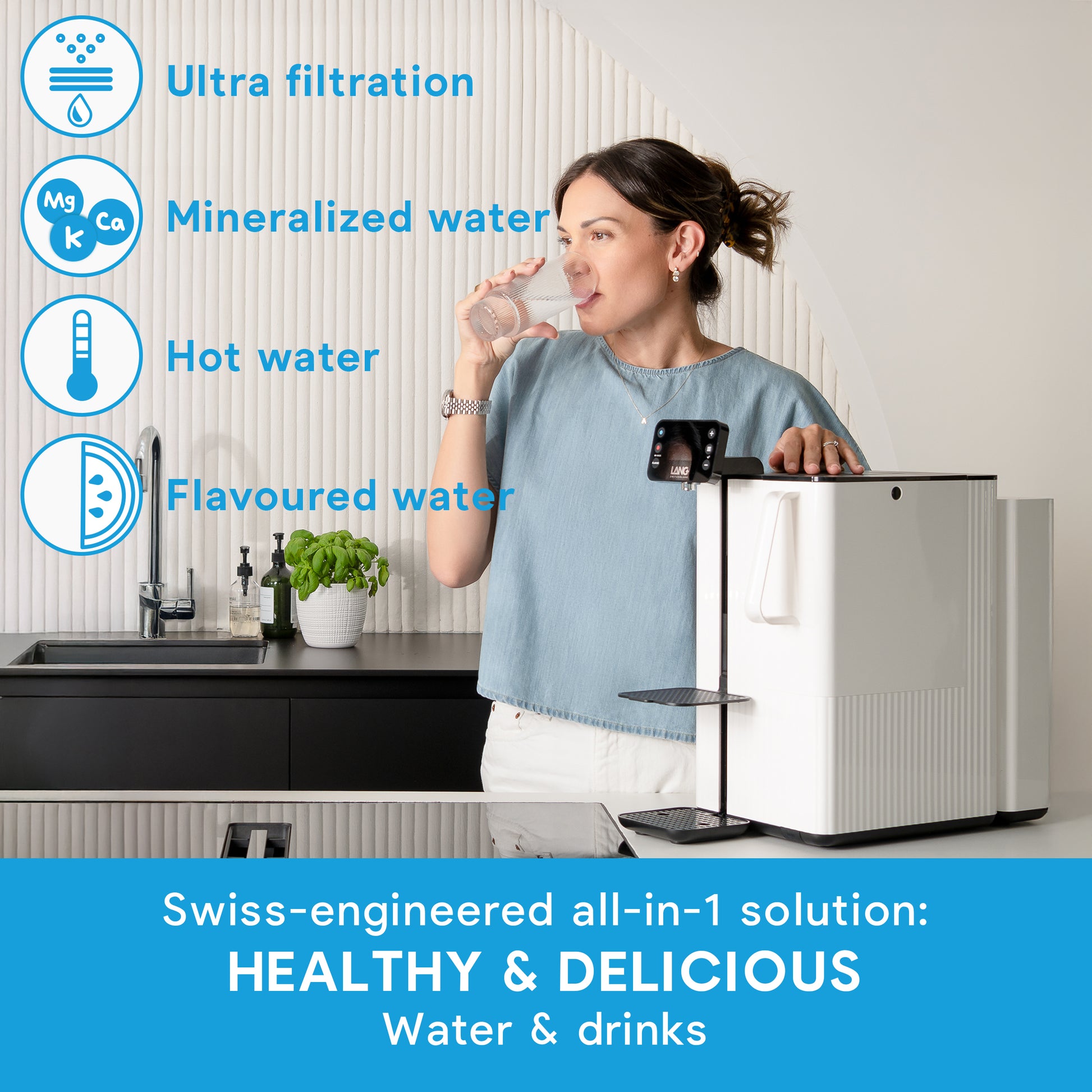 Enjoy pure mineralized water at the touch of a button, no need to buy mineral water bottles anymore